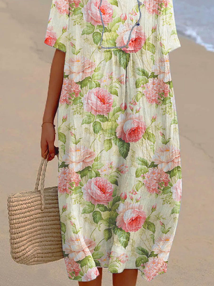 Robe d'art à motif floral irrégulier à manches courtes pour femmes