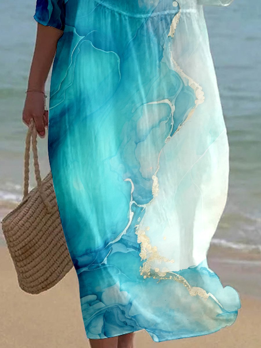 Women's Floral Alcohol Ink Art Printed Casual Holiday Dress